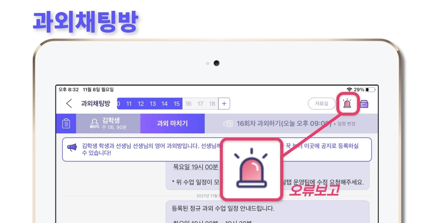 오류가 발생한 과외방(혹은 과외채팅방)에서 오류 보고 제출하기