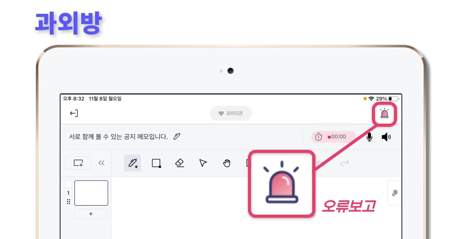 사이렌 버튼을 누르신 후 학생/선생님께서 오류 보고를 제출 부탁드립니다.